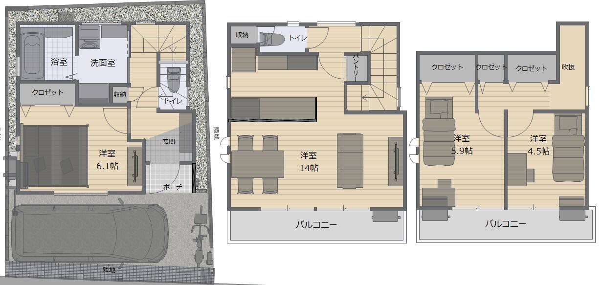 分譲中!■土地面積:15.18坪 建物面積:27.63坪 3LDK